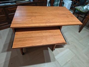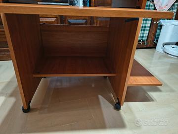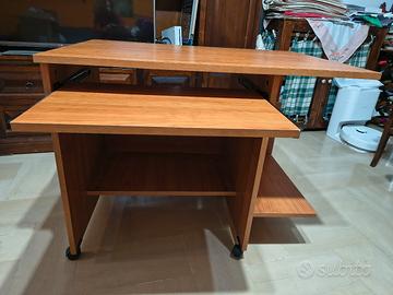 Vendo per inutilizzo scrivania porta computer con ruote. Condizioni perfette, senza nulla di rotto. Dispone di grande ripiano superiore adatto per due PC portatili e due monitor, ripiano porta tastiera estraibile, ripiano porta computer fisso, ripiano per stampante. Dimensioni base 80 cm x 60 cm Prezzo leggermente trattabile.