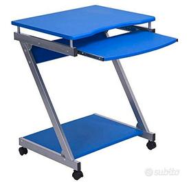 COMPUTER Office Desk. Ruote girevoli. Scrivania multifunzione mobile blu