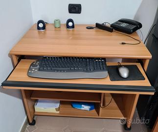 Vendo, per non utilizzo, scrivania porta computer, abbastanza ampia per poter porre altro materiale oltre a quello informatico. Piano porta tastiera con guide metalliche estraibile. Sul lato destro è disponibile il porta pc, mentre in basso è disponibile un latro ripiano per eventuale stampante. La scrivania è facilmente trasportabile in quanto dotata di rotelle. Si tratta di un mobile resistente e di buon materiale. Dimensioni piano lavoro: 90x60 – Altezza 80 cm. Eventuali spese di spedizione a carico dell’acquirente. Prezzo non trattabile. Contattare solo se interessati a queste condizioni.