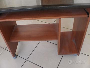 Vendo scrivania porta pc color ciliegio facilmente da spostare con ruote e piano in vetro solo interessati grazie ritiro a mano Piscinola Napoli