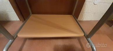 Piano estraibile dove appoggiare la tastiera cm 48 di lunghezza. Larghezza totale comprensiva di rotelle cm 50. In più, sedia ufficio con rotelle un po' "punzecchiata" sul tessuto (v. foto). Prezzo totale 20 euro.