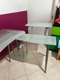 Scrivania di vetro con supporto per pc (180°) vendo per inutilizzo. Ottimo stato. 120x60 + 60x70