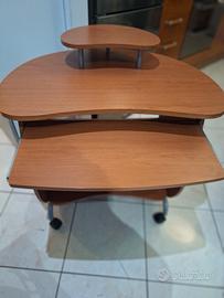 Scrivania porta pc con ripiano estraibile per tastiera e ripiano rialzato per monitor.