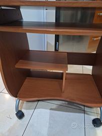 La scrivania presenta alcuni graffi e il meccanismo di bloccaggio delle ruote non funziona bene