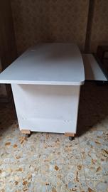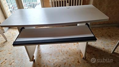 Scrivania in formica bianca antigraffio con penisola a binari porta tastiera PC come foto. Rotelle smontabili per spostamrnti rapidi