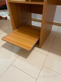 Vendo scrivania in perfette condizioni in legno con piani con guida scorrevole ideale anche per un utilizzo da ufficio con ripiani per case pc, stampante, tastiera ecc. non ha segni di usura.