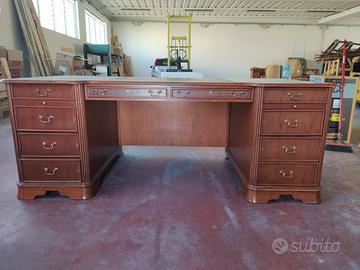 stupenda scrivania presidenziale e ministeriale con antine e cassetti su entrambi i lati e piano in pelle con greca in oro. Grandi dimensioni L.200 P.120 H.76
