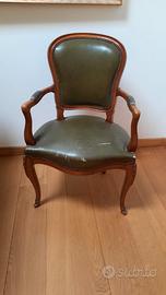 Scrivania Presidenziale stile Luigi XVI 160 x 90 x 83 intarsiata, piano in pelle, 5 cassetti, poltrona in pelle e 2 poltroncine in pelle
