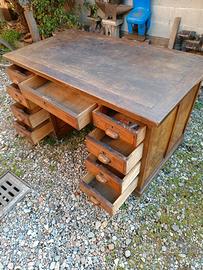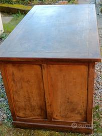 vecchia scrivania impiallacciata in noce primi 900 da cm 78 x 138 alta cm 80 . 9 - nove - cassetti con maniglia a conchiglia . no chiave. pianale in legno . trattamento antitarlo eseguito . consegna a mano non spedisco
