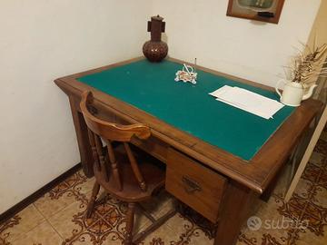 Vendo scrivania da ragioniere primi annio del '900 con tappeto verde, 2 cassetti piccoli ed un casseddo grande con schedario.