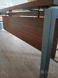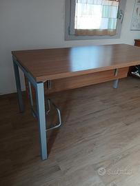 Pari a nuovo vendo scrivania finitura noce,comprata 1 anno fa da rinomato mobilificio di arredo design e ufficio,prezzo di acquisto euro 270 (pari a nuova con accessori porta pc e copri gambe) misure allegate, vendo a metá prezzo leggermente trattabile solo veramente interessati,cedo per cambio progetto