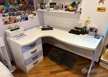 Scrivania ragazza lilla e bianca