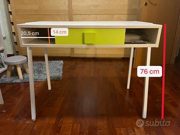 Scrivania di qualità (Ginocchi Arredamenti) in ottime condizioni. Larghezza totale: 95 cm, profondità 57 cm, altezza 76 cm. NE HO DUE, se le acquisti entrambe 160 euro con sconto. Ho anche Letto sovraelevato con scalette abbinato (stesso materiale e stesso colore) e sedia ammortizzata (a breve le foto).