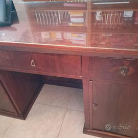 Scrivania in legno, prodotto artigianale .Dotata di tre cassetti e due sportelli sul davanti , due sportelli sul retro . Misure cm 140 / 71 h cm 82 . Non si effettua spedizione .
