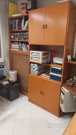 Scrivania angolare con appoggio reception +cassettiera su ruote+ porta PC + libreria archivio + vetrinetta .. Ritiro un loco . Vendibili anche separatamente