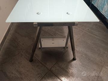 Scrivania in vetro, altezza regolabile, compresa di scomparto porta pc. Larghezza 1,6mt Profondita 0,8 mt Altezza 0,8mt (Regolabile)