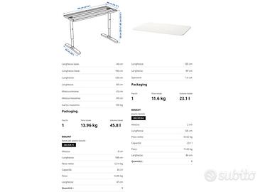 Scrivania IKEA Bekant bianca Misure 120 x 80 cm regolabile in altezza da 65 a 85 cm Usata poco e in perfette condizioni come nuova Smontata con istruzioni di montaggio allegate