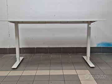 Scrivania regolabile in altezza IKEA SKARSTA, modello con struttura regolabile manualmente tramite manovella e piano bianco. Ideale sia per lavorare in piedi o seduti, perfetta per home office, studio o postazione ergonomica.