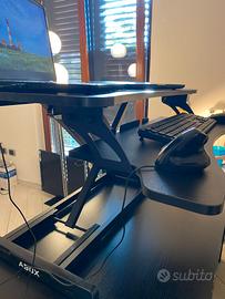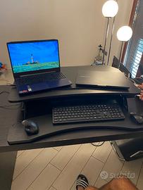 Scrivania/alzata ergonomica regolabile in altezza, ideale per lavorare sia seduti che in piedi 💻⬆️. Struttura solida in colore nero con ripiano superiore per monitor o laptop e piano inferiore per tastiera e mouse. Movimento fluido e stabile.
