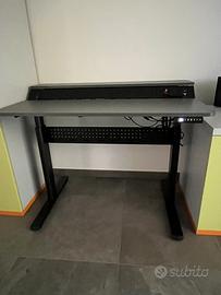 Scrivania regolabile in altezza, eletteica con funzione memory. Dopoio piano di lavoro, passacavi. Carico massimo 80kg.