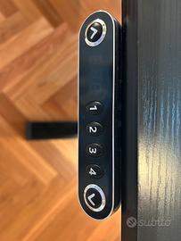 Legno e metallo. Altezza minima 69 cm. Altezza massima 115 cm. 2 x buchi cavi e un appendino laterale per accessori. Ritiro NoLo, vicino metro Pasteur.