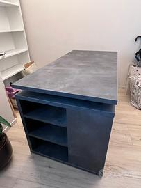 Scrivania reversibile 140x70 cm in legno grigio con mobile contenitore con vani a giorno e anta rovere - Wells.