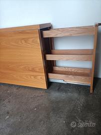 robusta scrivania in legno su ruote in buonissime condizioni con doppia postazione di lavoro e cassetti centrali .. l'ingombro da aperta è di cm 160 x 80 da chiusa cm 38 x 80 .. no offerte ridicole grazie