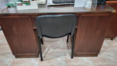 scrivania modello marina col piano in cristallo con 5 cassetti più uno grande ottima per ufficio per studio avvocato o notaio molto elegante.