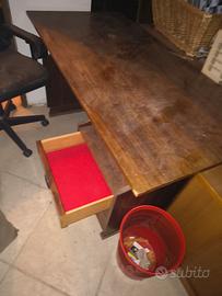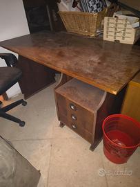 scrivania in legno usata molto bella come foto misure lunghezza cm 140 larghezza cm 70 altezza cm 76 con 3 cassetti