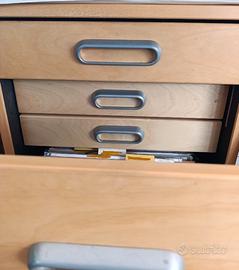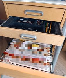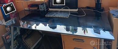 Vendo scrivania in vetro nero con gambe in acciaio regolabili. Si vende completa di cassettiera in legno come da foto. Misure: 160l x 80p cm. Smontaggio e trasporto a carico dell'acquirente. Ritiro SOLO a mano zona Roma sud. Astenersi perditempo e affaristi!