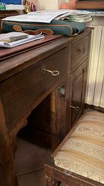 Vendo scrivania in legno massello noce/rovere in stile rustico. Dotata di cassetti e vano laterale, struttura solida e stabile. Perfetta per studio, ufficio o arredamento classico. Misure: lunghezza 130 cm altezza 75 cm profondità 50 cm Smontabile per il trasporto. Buone condizioni.