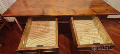 Legno noce; Altezza: 76 cm Larghezza:75 cm Lunghezza: 139,5 cm N. Cassetti: 2 Profonditá: 53 cm larghezza: 31 cm. Prezzo trattabile