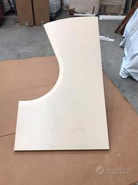 Vendo moderna scrivania sagomata color beige. Ottima per ufficio. Richiede fissaggio al muro. Per le altre dimensioni guardare le foto dell'annuncio Altezza da terra: 73.3 cm