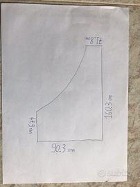 Vendo moderna scrivania sagomata color beige. Ottima per ufficio. Richiede fissaggio al muro. Per le altre dimensioni guardare le foto dell'annuncio Altezza da terra: 73.3 cm