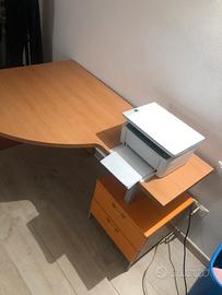 Scrivania sagomata laminato ciliegio e arancione