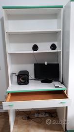 Scrivania con mensole incorporate.