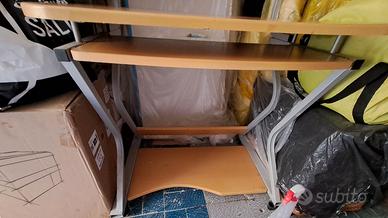 Vendo scrivania come in foto, dispone di ripiano porta tastiera a scomparsa e di un ripiano superiore (comodo per riporre libri, stampante ecc.) Dispone anche di un ripiano inferiore quasi a livello pavimento. Presenta alcuni segni relativi all'usura (nel ripiano inferiore in un lato è un pò rovinato e nel ripiano superiore è presente un piccolo foro dove prima era situata una lampada). Per le misure ed ulteriori dettagli contattatemi tranquillamente, prezzo leggermente trattabile. SOLO RITIRO