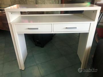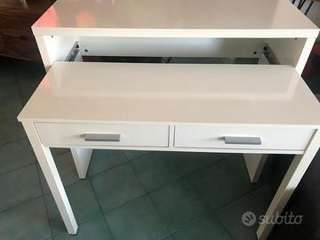 Scrivania, scrittoio multiposizione con piano estraibile e 2 cassetti, colore bianco opaco. Buone condizioni.