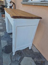 GRAZIOSA SCRIVANIA - SCRITTOIO PROVENZALE, IN LEGNO DI ROVERE MASSELLO, CON PIANO IN LEGNO NATURALE E BASE RESTAURATA SHABBY COME DA FOTO, SOLO DA METTERE IN CASA.