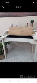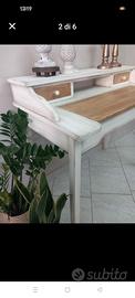 Vendo bellissima scrivania in legno patinata a cera con cassetto a ribalta, restyling effettuato con vernici a gesso ecologiche. Misure 100x 57x94h Zona Ardea o Roma eur possibilità di trasporto.