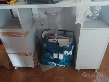 vendo per inutilizzo scrivania con aspiratore, 2 cassetti scorrevoli e 2 vani ad antina (macchiata da scotch con alcool o diluente viene pulita),lente di ingrandimento con luce a 3 modalità e sacco con vario materiale ( gel,gel colorati,fresa con punte,confezione semi nuova lime 100/180 e altro ancora).