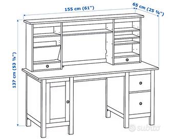 Vendesi SCRIVANIA ,mobile IKEA tipo Hemnes in legno bianco. 2 Cassetti con spazio organizzativo interno e sportello con 2 ripiani. Dimensioni cm 63x160 H 78