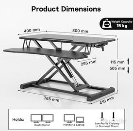 Vendo un Convertitore da Scrivania In Piedi con Vassoio della Tastiera, 800mm Regolabile in Altezza.
