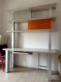 Scrivania per stanzetta. Altezza 2,10, profondità 60 e lunghezza 1,67. Ante colorate scorrevoli.