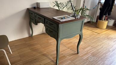 Splendida scrivania stile Chippendale Restaurata e ridipinta 130 cm larghezza 61cm profondità - altezza 80cm Presenti solo piccoli segni di usura del tempo, cassetti scorrevoli e nessun problema di solidità Da ritirare in Parma centro NO PERDITEMPO