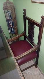 Maestosa scrivania in stile impero totalmente intarsiata - misure lunghezza 147 cm e larghezza 83 cm - completa di 3 sedie, una principale con poggia braccia e due secondarie, anche loro intarsiate, sono presenti anche i due cassetti ma manca la chiave.