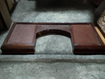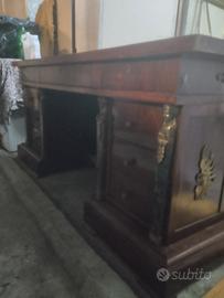 Scrivania stile impero in legno massello, con cassetti riquadro in pelle sul piano decorazioni in marmo e bronzo.