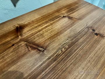Piano: legno massello di abete, vernice nitrocellulosica trasparente, finitura opaca leggermente anticata