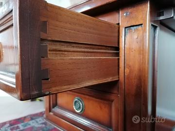 Cassetti con incastri a coda di rondine, 4 cassetti laterali e 1 cassetto centrale.