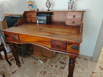 scrivania stile vintage con 8 cassettini in legno